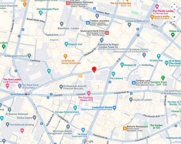 We are close to Bank underground station with Liverpool Street, Moorgate and Canon Street underground stations also within walking distance from our offices.